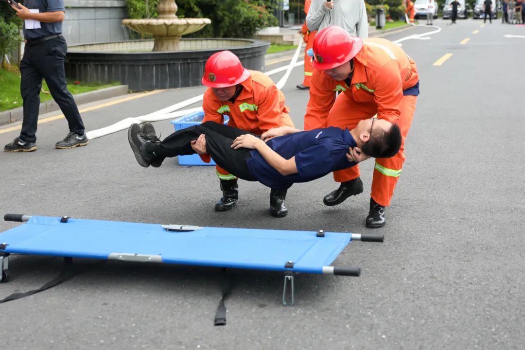 6月28日,一场别开生面的安全技能比武竞赛如火如荼举办。此次竞赛以“接水带灭火”、“担架抬人心肺复苏”两大项目为核心,采用严格计时制,综合考量选手的速度与操作规范度来评判胜负。比赛现场,选手们争分夺秒、全力以赴。在“接水带灭火”项目中,参赛选手们迅速完成水带连接,并精准扑灭模拟火源;在“担架抬人心肺复苏”环节,参赛队员们规范完成伤员固定、安全转运,并严格按照标准流程实施心肺复苏。