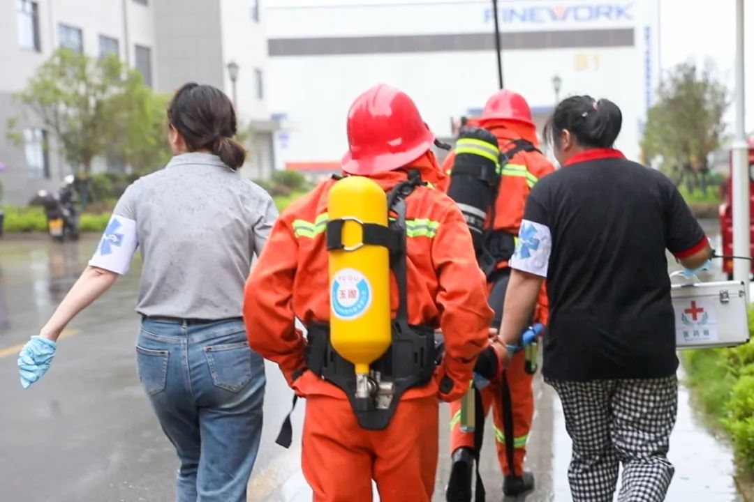 6月20日,下着大雨,公司于五厂区宿舍区域如期开展火灾综合应急演练,模拟烟头引燃火灾场景。火情骤起后,警戒疏散组引导员工用湿毛巾捂口鼻,沿安全通道低姿撤离,消防灭火组迅速携带装备压制火势,并使用消防车进行灭火。医疗救护组全程待命。各小组各司其职、紧密配合,高效完成应急处置。