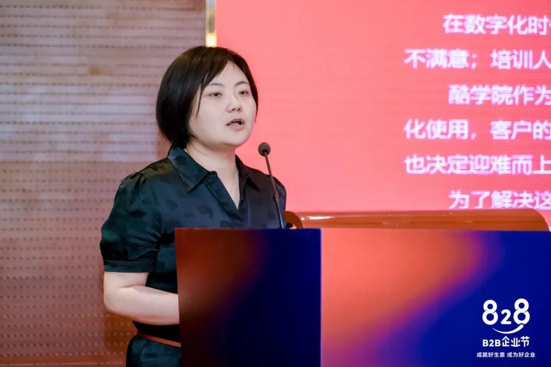 酷学院西安分公司营销总监朱妮通过形象生动的讲述,分享了全新的智能企业培训和人才发展平台,以及基于AI大模型的智能问答和智能考试应用,展示了酷学院产品的强大实力,也预示着企业培训学习产品的智能化全新篇章已经拉开序幕。
