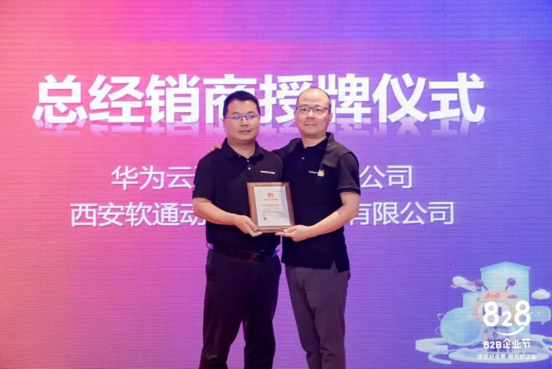 活动现场还举行了陕西区域总经销商授牌仪式,陕西华为云销售伙伴发展部部长张魁为软通动力授牌,标志着双方将进一步深化合作,发挥各自优势与最大效力,共同为陕西云市场注入新活力。