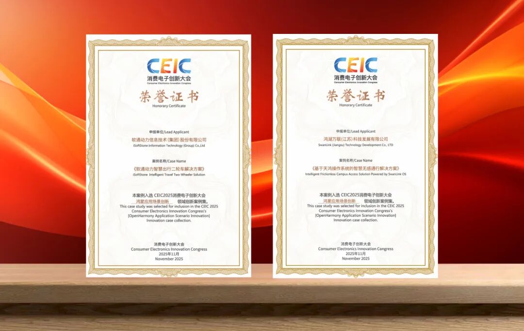 以“智能生活”为主题的CEIC 2025主论坛中,《行业鸿蒙终端发展蓝皮书2025》重磅发布,成为本次大会聚焦“根技术生态构建”的重要亮点。蓝皮书直面全球物联网产业核心痛点,为行业鸿蒙终端生态发展提供兼具战略高度与实践价值的行动框架。软通动力子公司鸿湖万联作为参编单位受邀上台见证发布。此外,软通动力智慧出行二轮车解决方案、鸿湖万联“基于天鸿操作系统的智慧无感通行解决方案”,成功入选鸿蒙应用场景创新领域创新案例集。