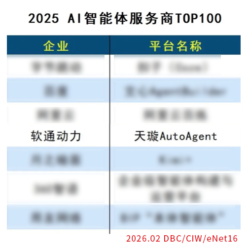 2月9日,DBC德本咨询发布“2025 AI 智能体服务商 TOP100”榜单,软通动力凭借旗下的软通天璇AutoAgent智能体平台成功入选。这是继软通天璇MaaS平台斩获“2025年度百大AI产品”行业认可后,软通动力在 AI 智能体领域获得的又一权威肯定。