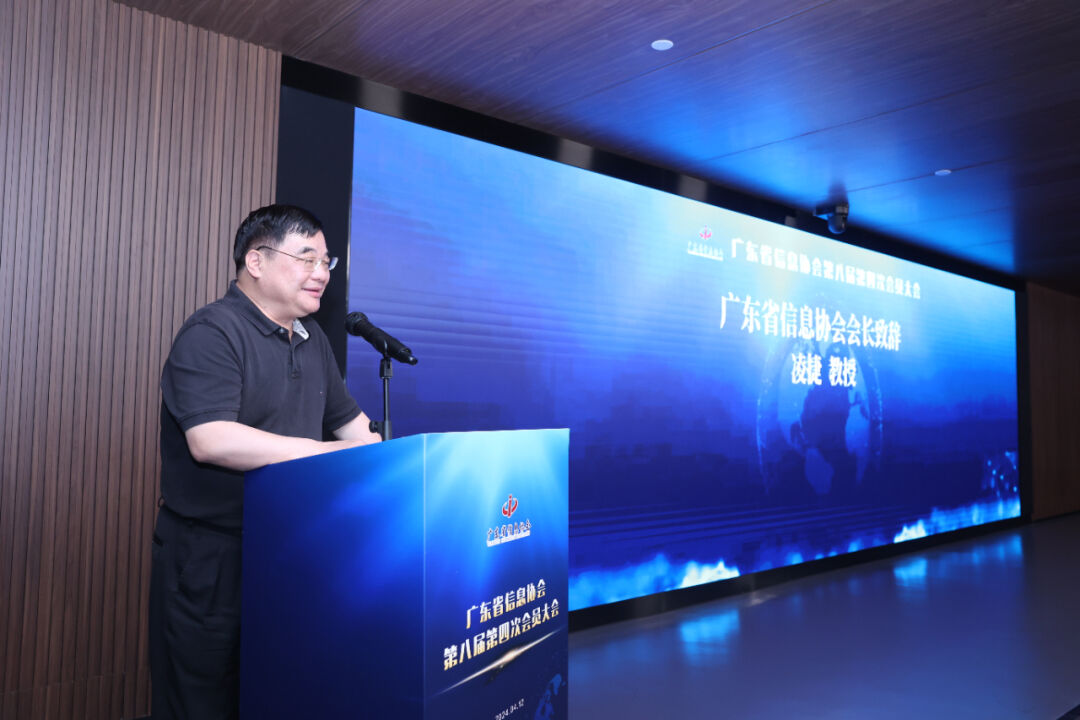 广东省信息协会会长凌捷教授在致辞中提出,协会要凝聚专业资源优势,搭建资源共享和产业交流平台,促进成员间深度合作和资源整合,为数字经济高质量发展建言献策,为汇聚产业力量增势赋能。