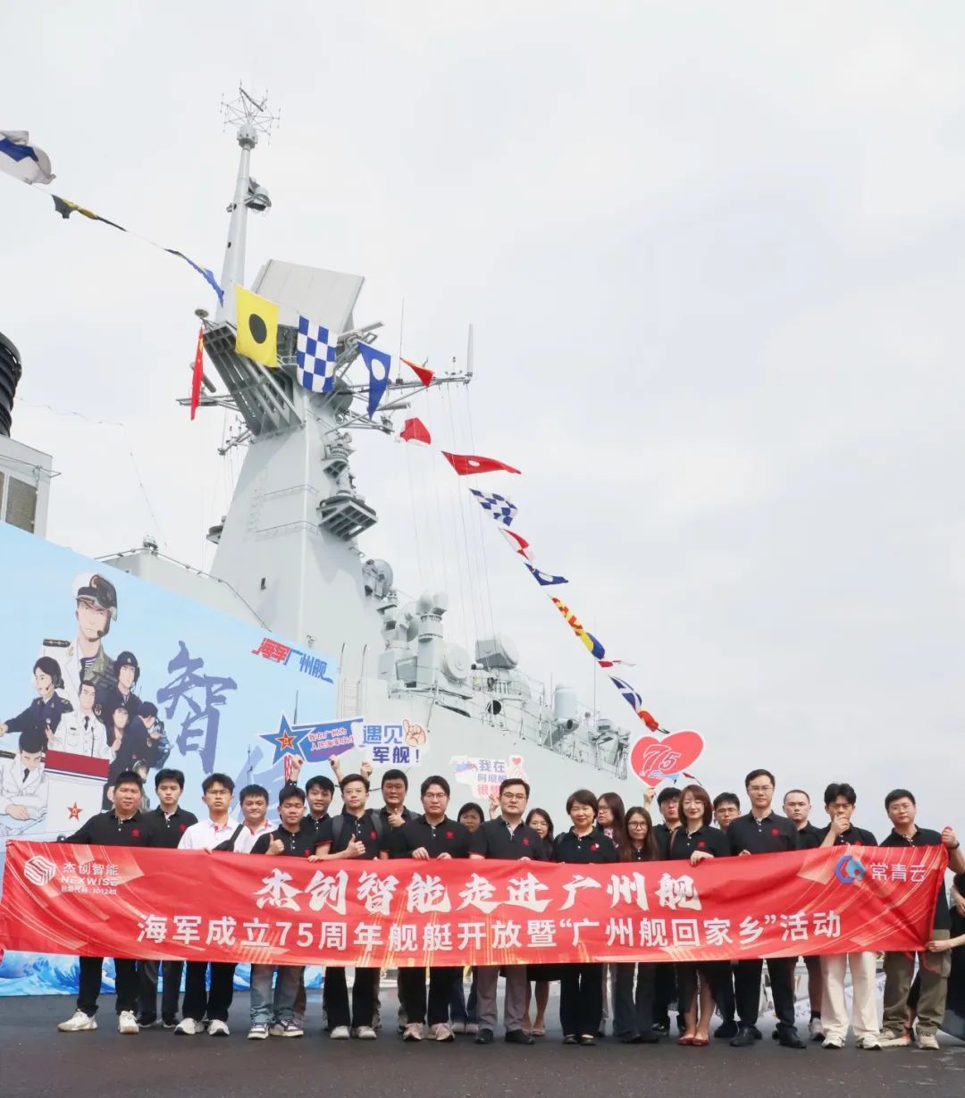 在人民海军成立75周年到来之际,经过现代化改装的广州舰,时隔12年再次驶回家乡广州。杰创智能受邀参加了海军成立75周年舰艇开放暨“广州舰回家乡”国防教育宣讲会,并登上“广州舰”近距离感受人民海军的发展与建设成就。