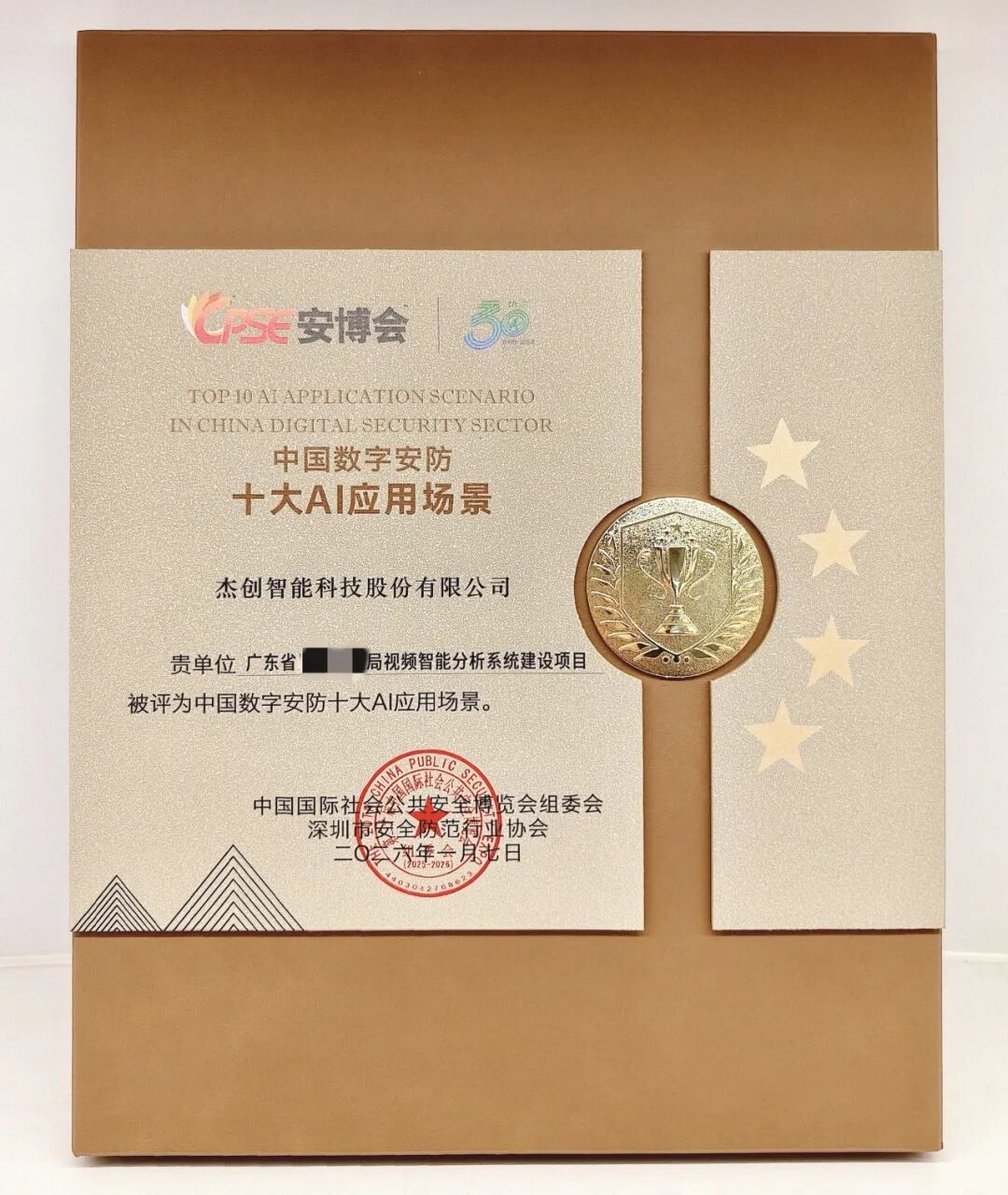 近日,“全域安全·智启未来”2026全国安防行业交流会暨深圳市安全防范行业协会三十周年庆典在深圳世界之窗隆重举办。杰创智能“广东省某局视频智能分析系统建设项目”被评为“中国数字安防十大 AI 应用场景”,为城市级智慧安防建设提供可复用的标杆范式。
