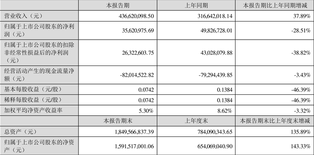 资产重大变化方面,截至2022年二季度末,公司货币资金较上年末增加304.34%,占公司总资产比重上升25.73个百分点,主要系首次公开发行股票募集资金到位。