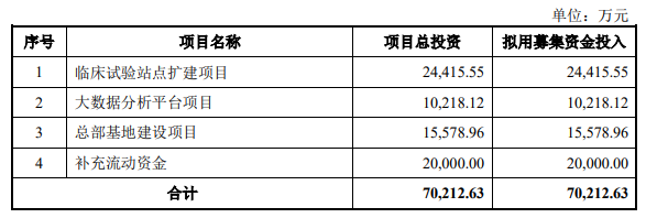 普蕊斯4月29日披露的招股书显示,公司首发募集资金7.02亿元,投向临床试验站点扩建项目、大数据分析平台项目、总部基地建设项目、补充流动资金。