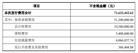 普蕊斯本次发行费用总额为7163.24万元,其中华泰联合证券获得保荐承销费用5120.00万元。