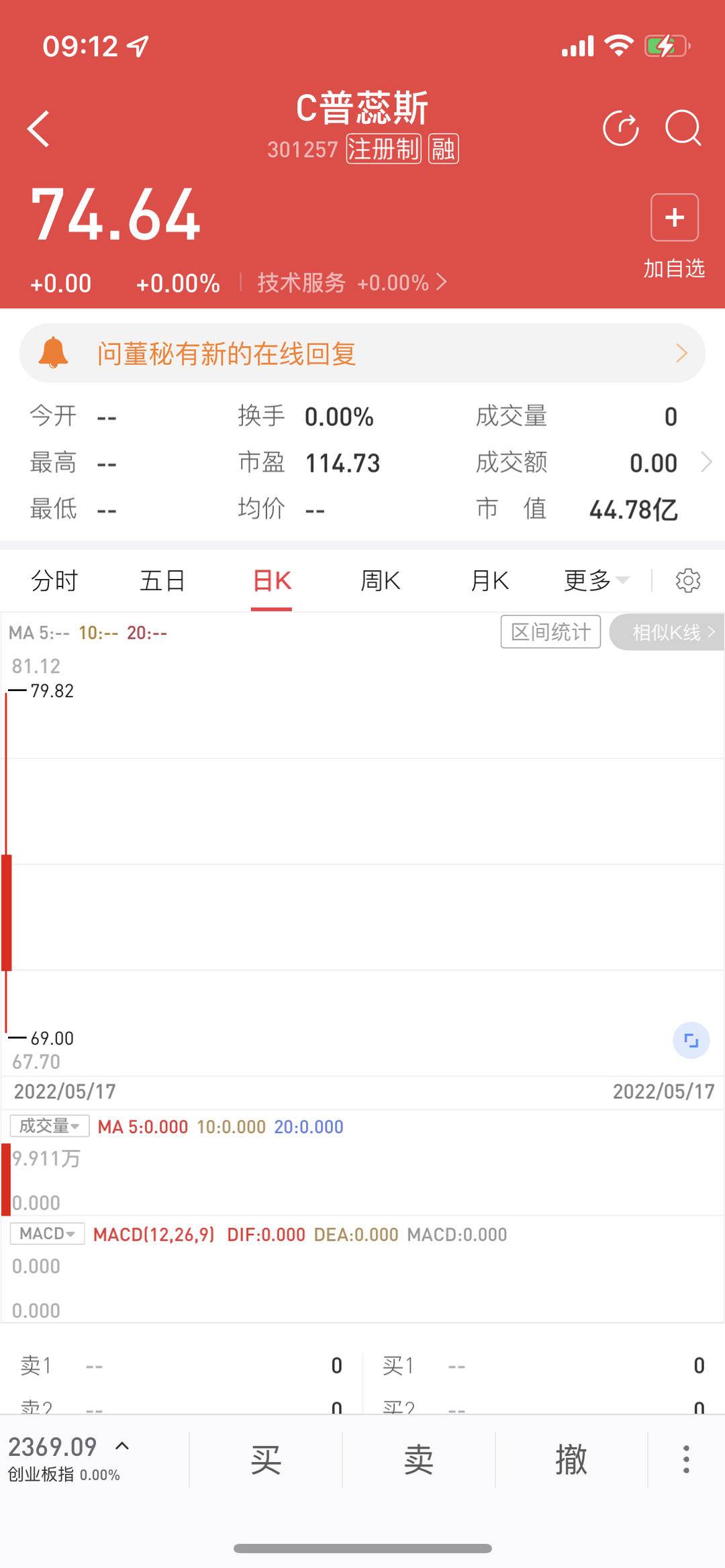 5月17日,在创业板上市的新股普蕊斯开盘涨近50%,最高涨幅超70%,按午间收盘价计算,投资者中一签收益接近1.5万元。普蕊斯本次发行的市盈率为48.75倍,显著低于其行业近一个月静态市盈率70.89倍。不过扬子晚报/紫牛新闻记者注意到,18日普蕊斯低开,盘中最低跌超17%,截至发稿时跌幅收缓至7%左右。意味着如果上市首日不卖出,次日获利或可能回吐。