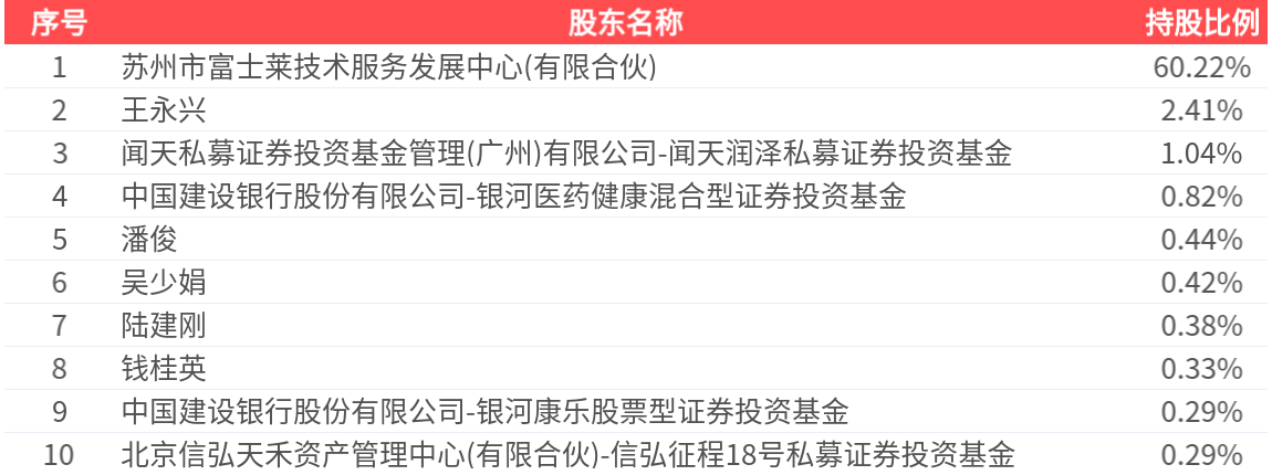 公司股东户数为1.06万户,前十大股东持股数量为6108.01万股,占总股本比例为66.63%,前十大股东持股情况如下: