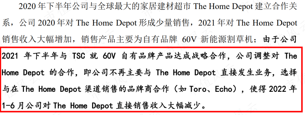 2020年下半年,格力博开始与家得宝合作,销售产品主要为自有品牌60V割草机。但是2021年下半年,公司却停止了与家得宝的直接业务,而是选择为家得宝的其他美国供应商(如Toro、Echo)代工。