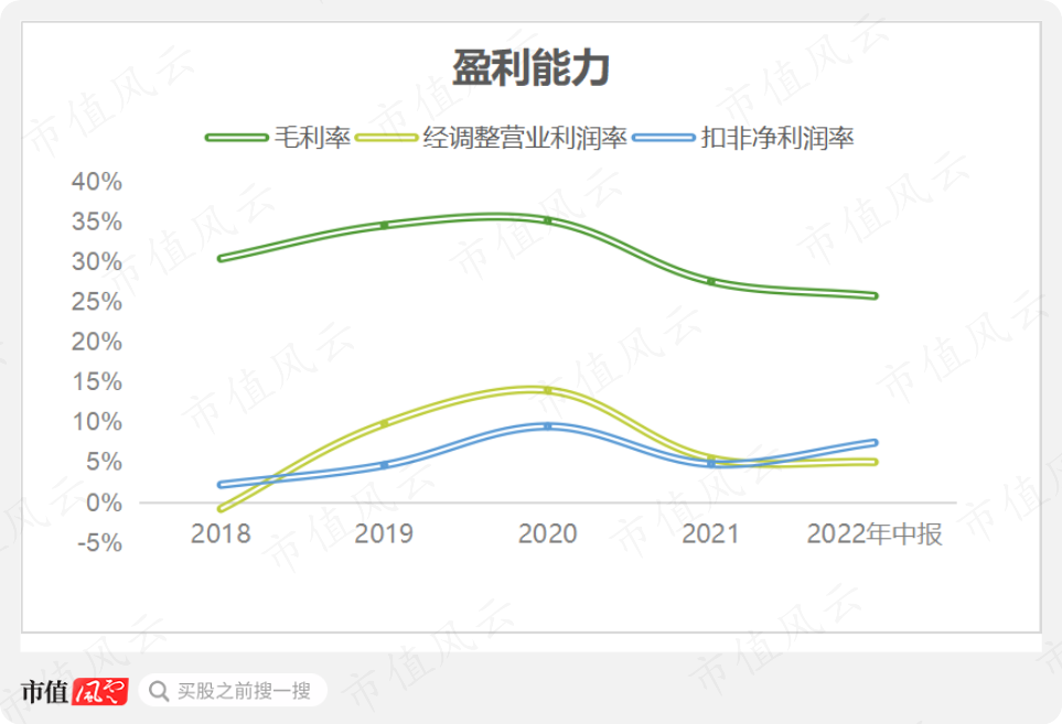 2021年,公司的扣非净利润率仅有4.7%,扣非净利润2.4亿,同比下降42%。