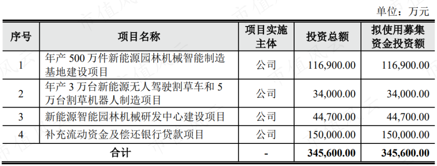 该公司被很多媒体称为“新能源园林机械第一股”——公司的预计募资金额高达34.56亿,是去年以来规模较大的IPO之一。