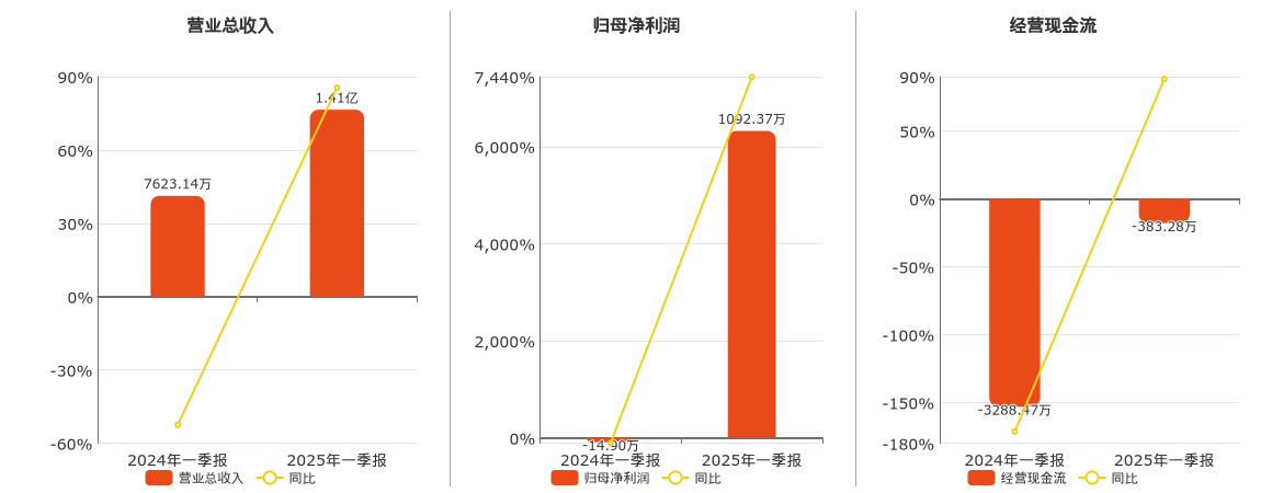 公司营业总收入为1.41亿元。归母净利润为1092.37万元。经营活动现金净流入为-383.28万元。