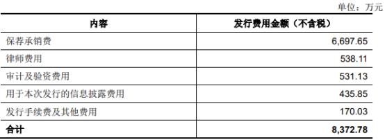 本次公司公开发行新股的发行费用(不含增值税)合计8,372.78万元。其中保荐机构中信证券股份有限公司获得保荐承销费6,697.65万元。