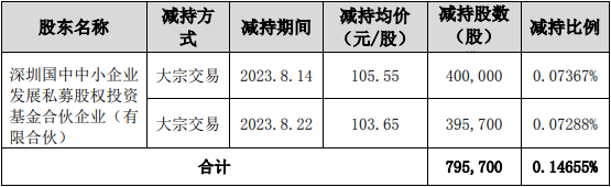 华大九天(301269.SZ)昨日晚间发布公告称,公司于近日收到公司股东深圳国中中小企业发展私募股权投资基金合伙企业(有限合伙)(以下简称“中小基金”)持出具的《简式权益变动报告书》。中小基金减持公司股份79.57万股,减持比例达0.14655%。