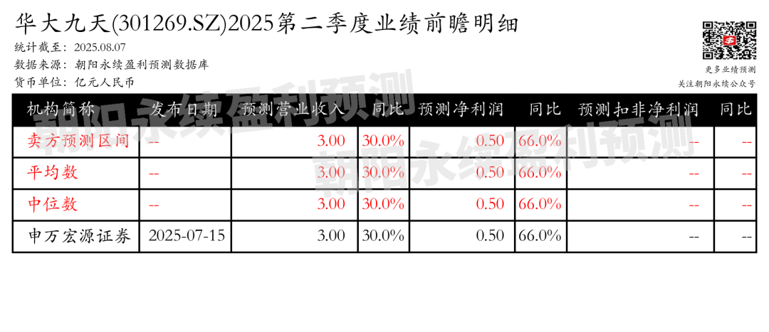 截至2025年08月07日,根据朝阳永续季度业绩前瞻数据: