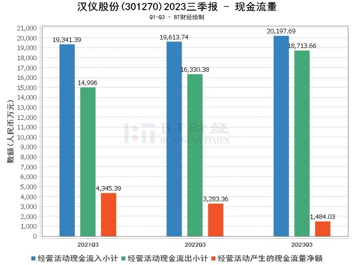 综上所述,汉仪股份在2023年三季度的经营状况总体稳定,但在营业利润、净利润、毛利率、净利率和净资产收益率等方面均有所下滑,显示出公司在盈利能力方面存在一定的压力。在现金流量方面,公司的经营活动产生的现金流量净额有所减少,但经营活动现金流入小计有所增长,显示出公司的现金流状况总体较好。