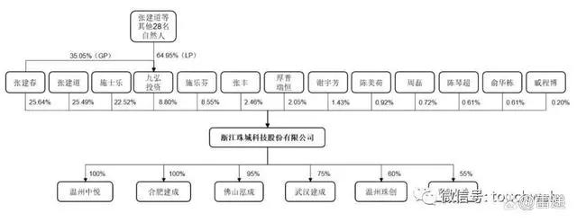 IPO后,张建春持股19.23%,张建道持股19.11%,施士乐持股16.89%,乐清九弘投资管理中心(有限合伙)持股为6.6%,施乐芬持股为6.41%;