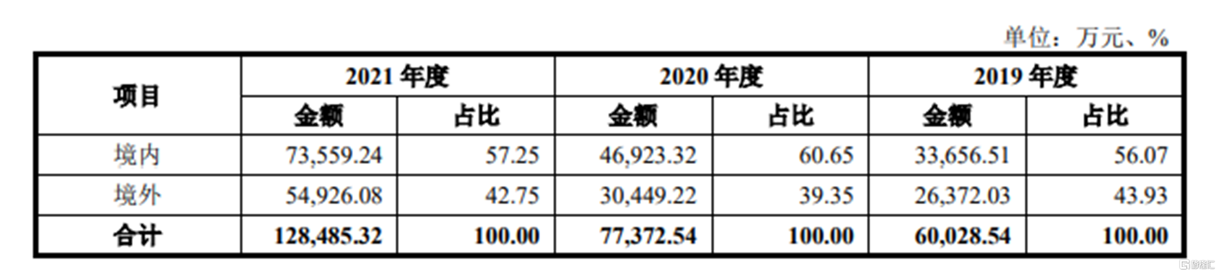 公司主营业务收入按销售区域划分,图片来源:招股书