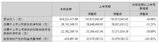 中国经济网北京9月8日讯金禄电子(301282.SZ)近日披露2023年半年度报告。上半年,公司营业收入6.19亿元,同比下降16.98%;归属于上市公司股东的净利润2874.53万元,同比下降51.21%;归属于上市公司股东的扣除非经常性损益的净利润2276.26万元,同比下降58.89%;经营活动产生的现金流量净额-45.47万元,同比下降101.81%。