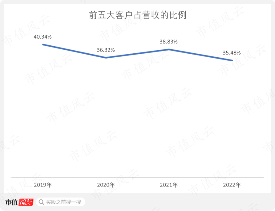 2019-2022年,公司前五大客户占营收的比例在40%左右,客户集中度并不高。粗略计算,宁德时代最多也就贡献了公司营收的10%左右,这说明公司对宁德时代的依赖程度并不大。