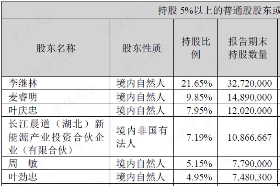 截至2023年上半年末,宁德时代持有长江晨道15.87%的股份,而长江晨道持有公司7.19%的股份,是公司的第四大股东。