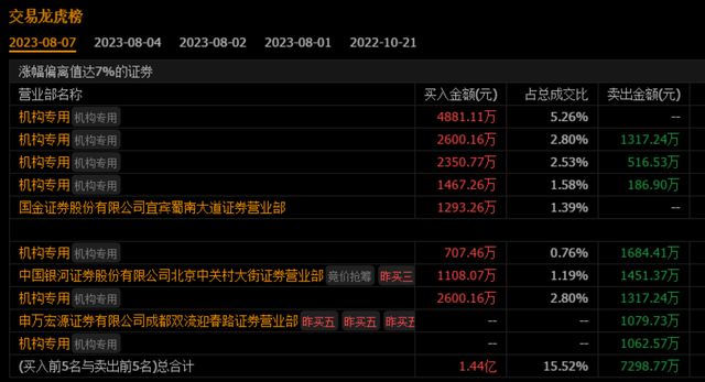 8月4日,国缆检测复制上一日走势,低开高走,尾盘再度涨停,龙虎榜显示:前五大席位上,有四路是机构,另外一路为游资,卖出榜上也是为三路机构和两大游资。
