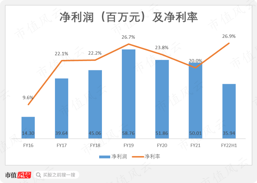 今年上半年有所好转,净利润为3594万元,同比增长18.3%,净利率相较2021年增长6.9个百分点,达到26.9%。