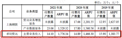 卓创资讯的付费用户数量最近三年连续下降至14.1万个;单位用户平均贡献收入(ARPU)则增长至1776.3元。