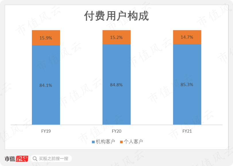 相比之下个人用户贡献的营收占比相对较小,约为15%。