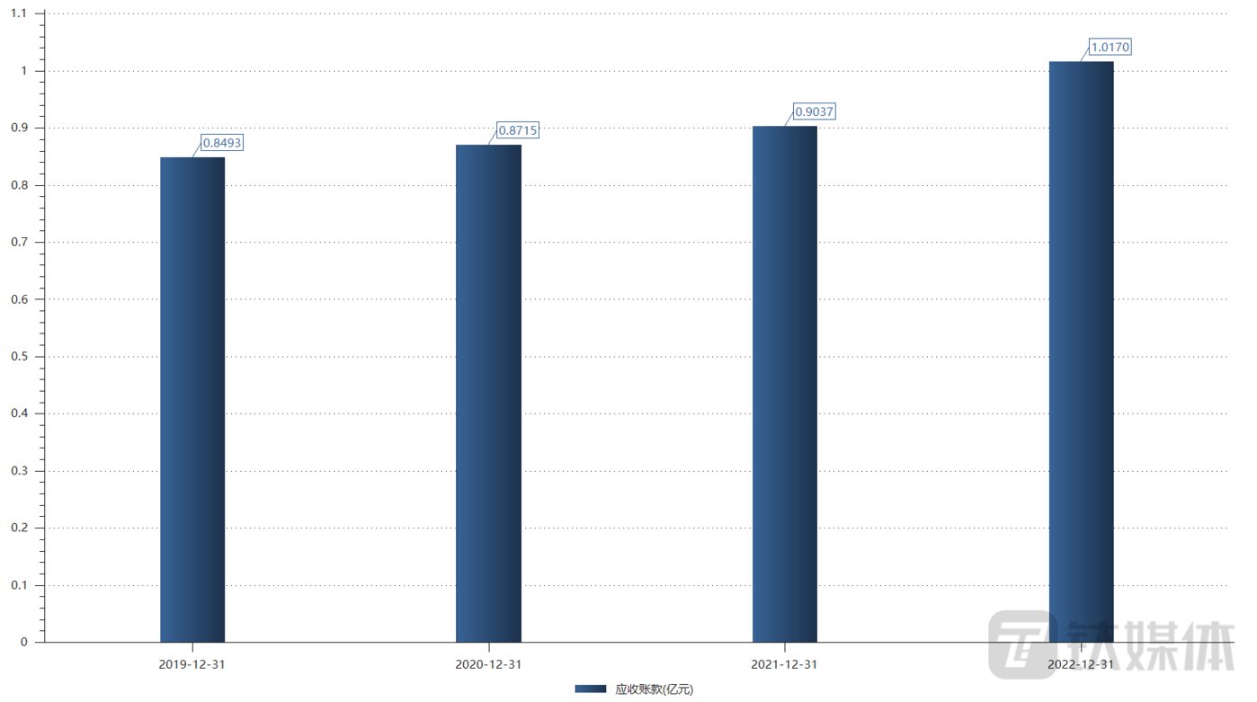 此外,伴随收入增长,公司应收账款出现逐年增加的趋势。2019年-2022年,公司应收账款账面价值分别为0.84亿元、0.87亿元、0.90亿元和1.01亿元。由此可见,公司业绩虽然保持一定的增长,但收入转换为应收账款和票据形式占用公司的大量资金,导致利润的含金量不足。