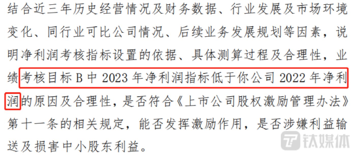针对上述情况,深交所要求远翔新材说明业绩考核目标B中2023年归属净利润指标低于公司2022年归属净利润的原因及合理性,是否符合《上市公司股权激励管理办法》第十一条的相关规定,能否发挥激励作用,是否涉嫌利益输送及损害中小股东利益。