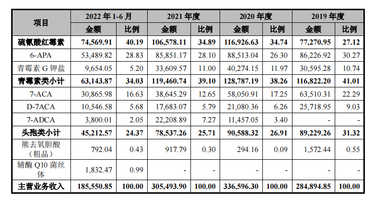 目前,川宁生物主要产品包括硫氰酸红霉素、青霉素类中间体(6-APA、青霉素G钾盐)、头孢类中间体(7-ACA、D-7ACA、7-ADCA)、熊去氧胆酸粗品等。