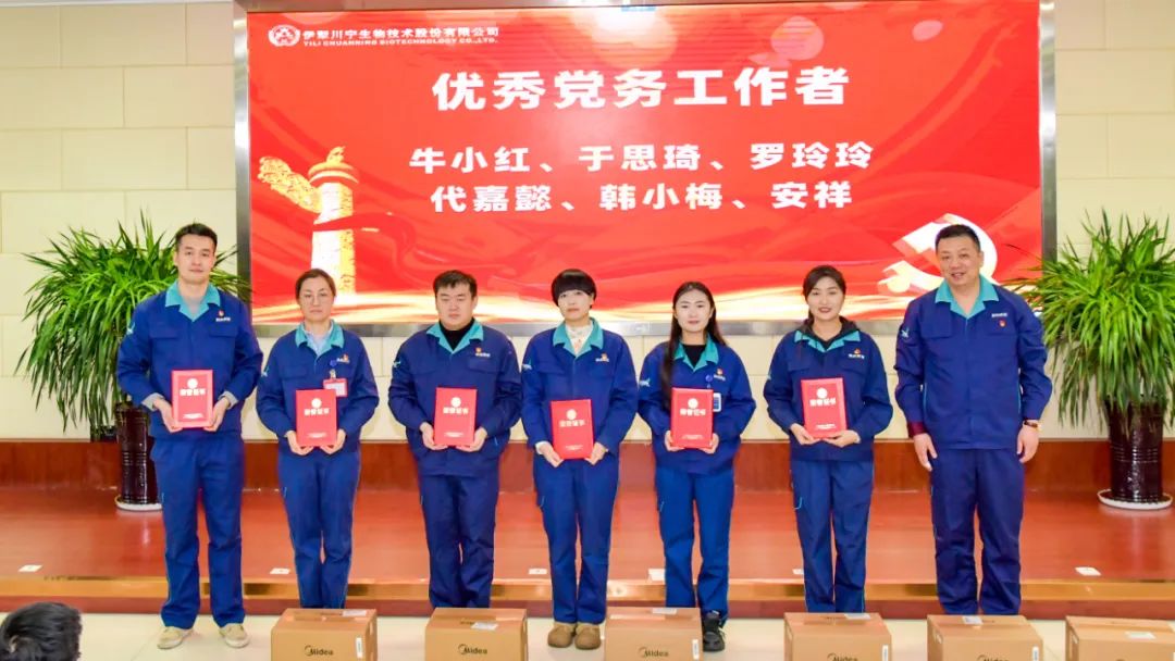 2月2日下午,伊犁川宁生物技术股份有限公司在五楼会议室召开了2023年度党建工作总结暨表彰会。总结成绩、表彰先进,激励和动员广大党员同志开拓创新、锐意进取,奋力推动川宁事业高质量发展,实现可持续的增长。川宁生物党委成员、各党支部书记、以及受表彰的共产党员参加了会议。