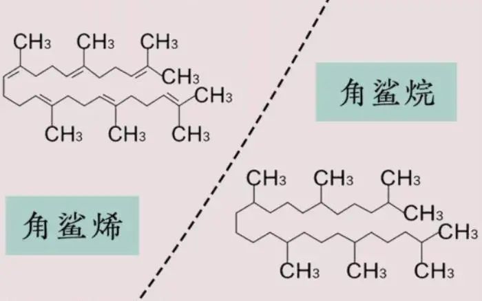 角鲨烷/角鲨烯:角鲨烷是角鲨烯的双键经过氢化得到的饱和烷烃油脂,又名异十三烷,其具有极稳定的化学性质。角鲨烷具有较强的亲和力,易溶于皮肤,能够在皮肤表面形成一种天然的保护屏障,使得皮肤更加水润、细腻、不粗糙,对皮肤有抗氧化的作用,有效加速皮肤细胞的增殖,从而有助于延缓皮肤的衰老。此外,角鲨烷在打开人体毛孔和血液循环方面有很好的促进作用,可加速细胞的新陈代谢,有助于破损细胞的修复。