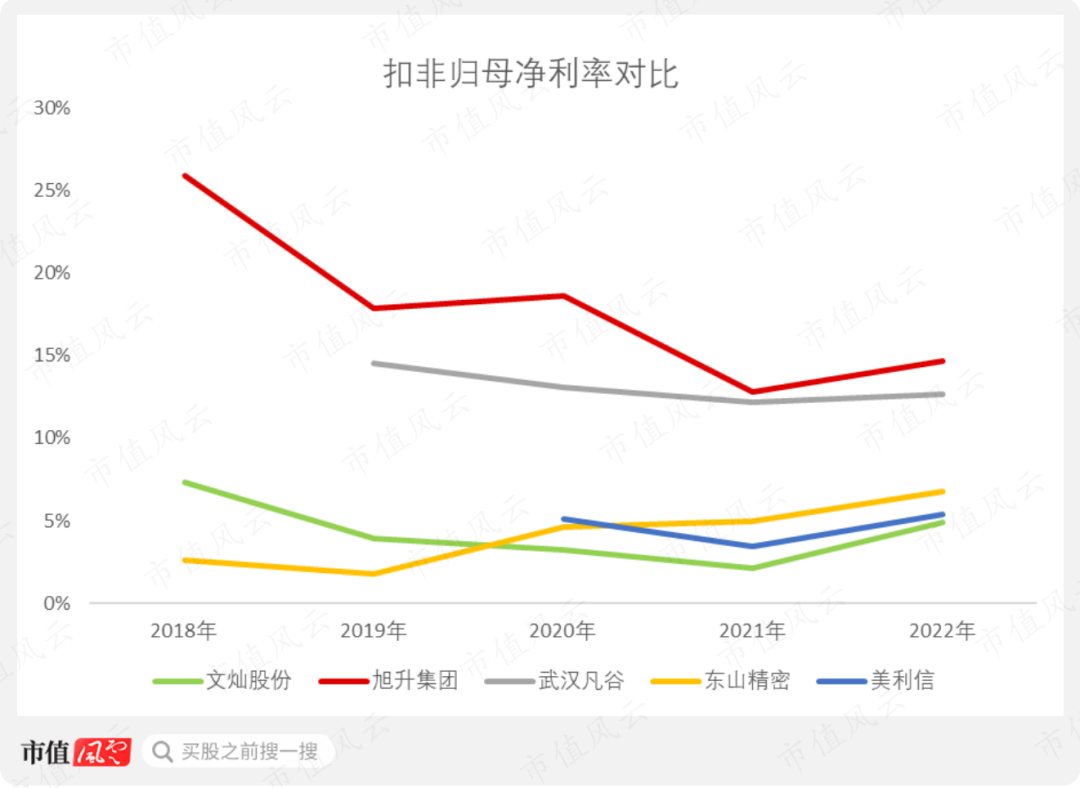 公司自2020年起开始盈利,2020-2022年,其扣非归母净利率最高也只有5%。而能够长期盈利的文灿股份和东山精密,其扣非归母净利率最高也才7%。