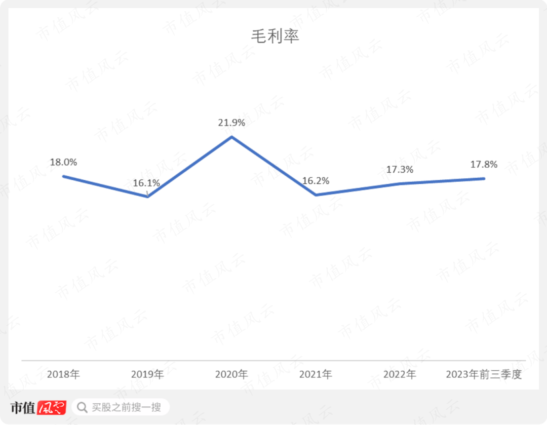公司的整体毛利率一直比较稳定,尽管这几年公司的产品结构、营收结构发生了较大的变化,主要原材料铝合金锭的价格也持续大幅度波动。2018-2023年前三季度,公司毛利率大致在17%左右。