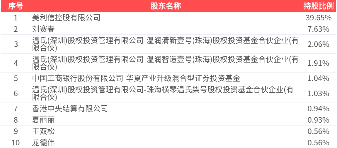 公司股东户数为2.09万户,前十大股东持股数量为1.19亿股,占总股本比例为56.30%,前十大股东持股情况如下: