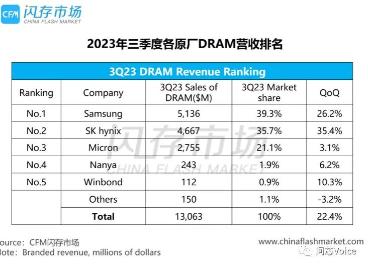 SK海力士销售收入达46.67亿美元,环比增长35.4%,市场份额为35.7%。