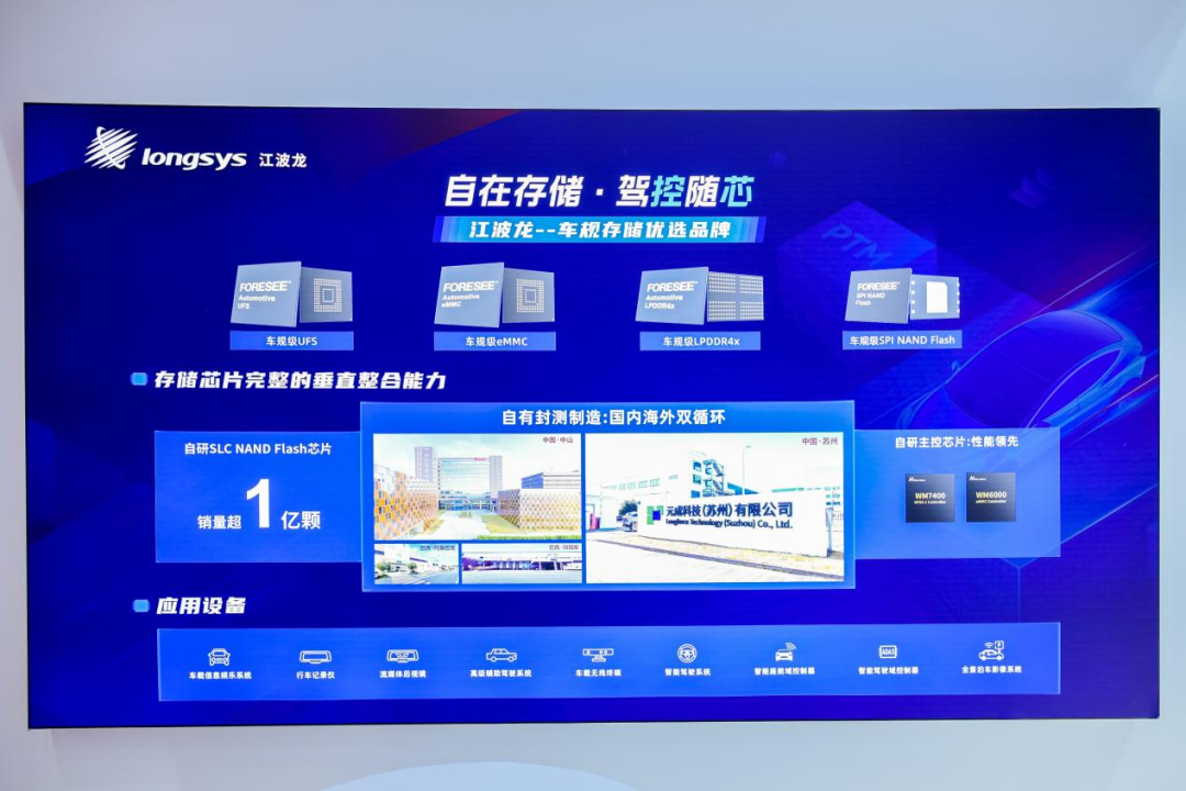 今年上海车展,江波龙展出了车规产品矩阵:车规级eMMC·全芯定制版、车规级LPDDR4x、车规级UFS、车规级SPI NAND Flash。