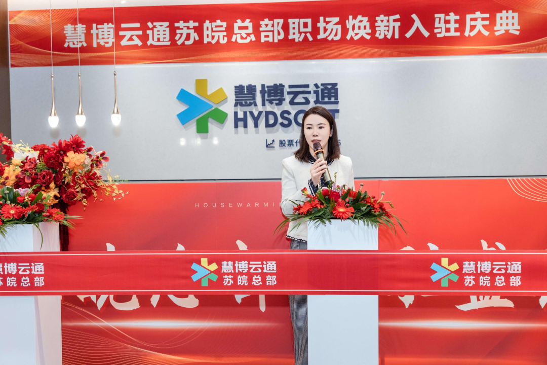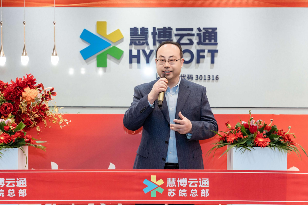孙玉文先生在活动现场作开场致辞。他表示,慧博云通苏皖总部搬入南京鼓楼创新广场是慧博云通深耕华东市场的又一重要里程碑,公司将凭借优秀的服务能力和创新技术,以数智化服务助推新质生产力发展,为客户提供更优质、更高效的解决方案,与各方携手共创美好未来。