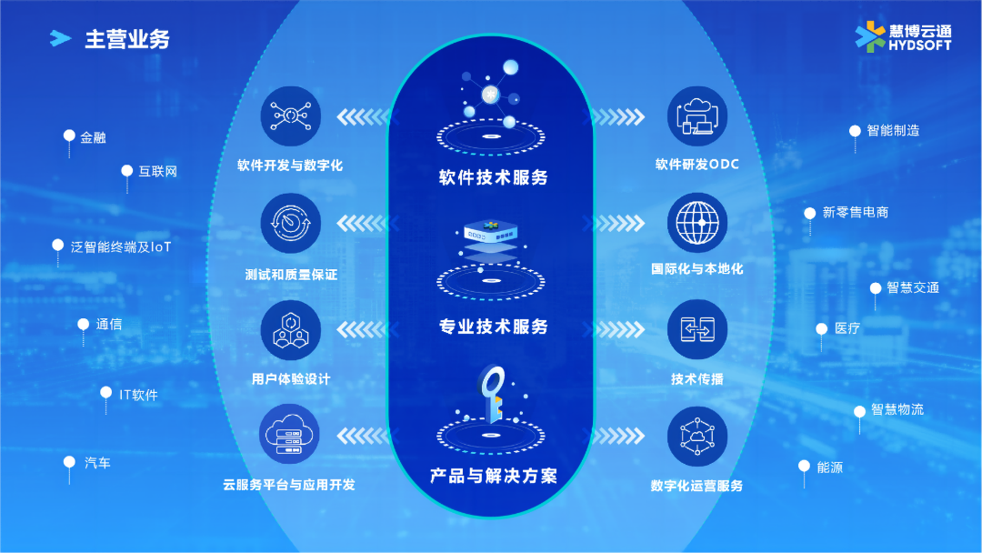 慧博云通专注于软件技术服务、专业技术服务、产品与解决方案三大板块,为国内和国际客户提供涵盖咨询、设计、开发、测试、运维等全周期的信息技术服务。作为公司在华东区域的重要支点,苏皖总部致力于为客户提供企业级私有云、专有云、行业云、混合云建设及智能化运维系统,以高效、优质的数智化技术服务帮助企业客户更加高效地进行应用管理和IT资源管理,提升客户IT系统的整体效率,为客户的重要生产系统高效赋能。