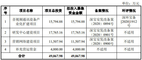 维海德公开发行募集资金总额为人民币112,284.48万元,扣除发行费用(不含增值税)后,募集资金净额为104,488.97万元。维海德实际募资净额比原拟募资多55420.99万元。公司2022年8月5披露的招股书显示,公司原拟募资49,067.98万元,用于音视频通讯设备产业化扩建项目、研发中心建设项目、营销网络建设项目、补充营运资金。