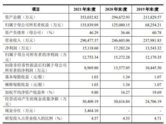 2021年,翰博高新营收增17.79%,扣非净利降33.93%。2019年、2020年、2021年,翰博高新营业收入分别为237,981.83万元、246,603.06万元、290,477.37万元;净利润分别为13,543.32万元、17,282.24万元、15,118.60万元;归属于母公司所有者的净利润分别为12,179.35万元、15,272.28万元、12,753.34万元;扣除非经常性损益后归属母公司股东净利润分别为10,445.50万元、13,577.05万元、8,969.80万元;经营活动产生的现金流量净额24,706.19万元、30,616.84万元、30,409.19万元。