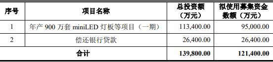 本次发行对象认购的股票自发行结束之日起六个月内不得转让。法律法规、规范性文件对限售期另有规定的,依其规定。本次发行的股票种类为境内上市人民币普通股(A股),每股面值为人民币1.00元,发行的股票将申请在深圳证券交易所创业板上市交易。本次发行的股票数量按照募集资金总额除以发行价格确定,且不超过本次发行前公司总股本的30%,即不超过 3728.70万股。本次向特定对象发行股票的募集资金总额(含发行费用)不超过12.14亿元(含本数),扣除发行费用后拟将全部用于年产900万套 miniLED灯板等项目(一期)、偿还银行贷款。