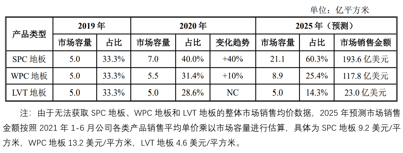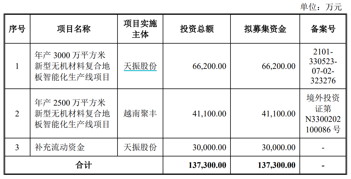 本次IPO公司拟募集资金13.73亿元,主要用于“年产3000万平方米新型无机材料复合地板智能化生产线项目”、“年产2500万平方米新型无机材料复合地板智能化生产线项目”和补充流动资金,即项目投产后公司将新增5500万平方米PVC地板产能。