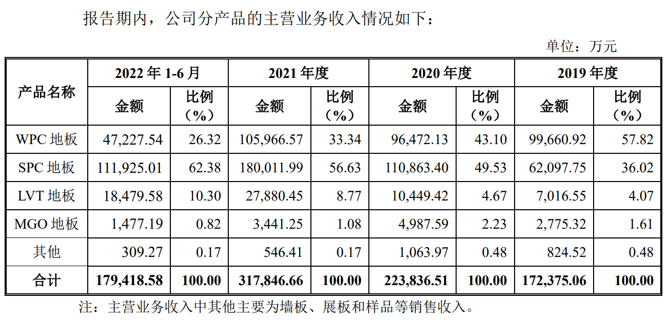 公司主要产品WPC地板、SPC地板、MGO地板、LVT地板等新型绿色环保装饰材料,可以根据下游地板品牌商的要求自行完成产品从研发设计到生产的全部环节,为客户提供各类ODM产品。