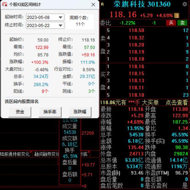 二级市场上,上市首日大幅破发的荣旗科技近两周股价持续上涨,累计涨幅超100%。截至今日收盘,该股涨超4%,换手率45.59%。