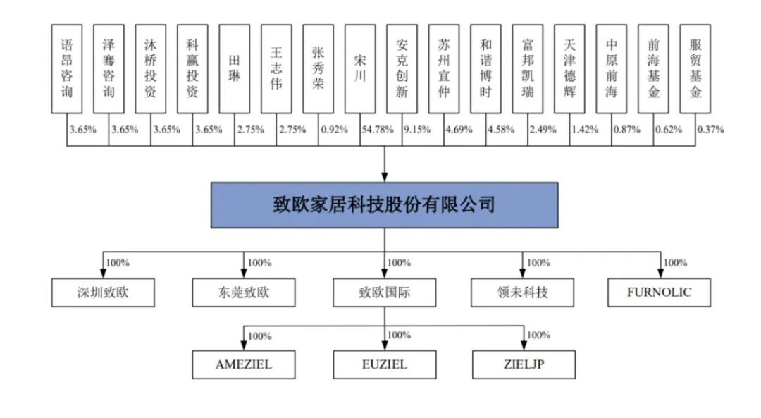 致欧科技前身为郑州致欧进出口贸易有限公司,由宋川及其母亲张秀荣于2010年共同出资设立。定位于全球互联网家居品牌商,致欧科技旗下拥有 SONGMICS、VASAGLE、FEANDREA 三大自有品牌,分别主打家居、家具、宠物家居等产品类目。